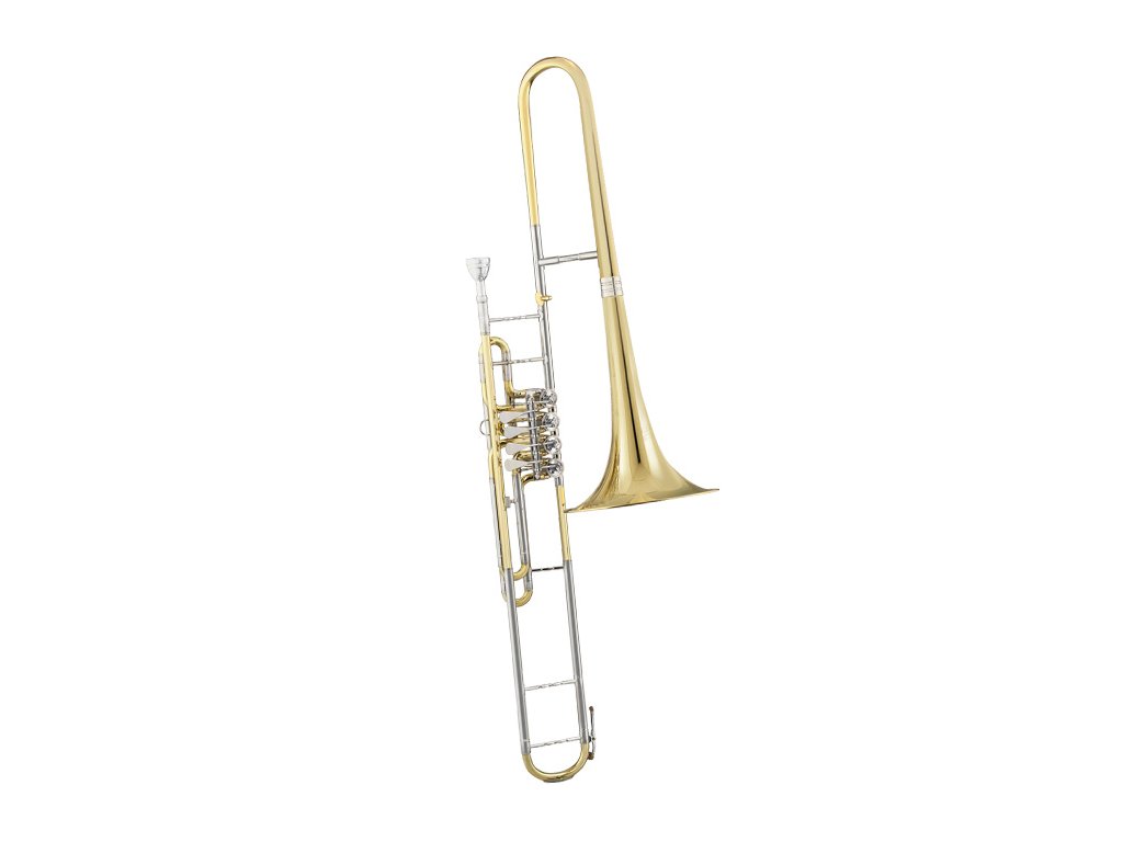 V. F. Červený CVT 571-4 is a professional Bb trombone with rotary valve, offering a rich, full tone and precise mechanics. Combining traditional craftsmanship with modern design, it is ideal for orchestral, chamber, and solo performance.